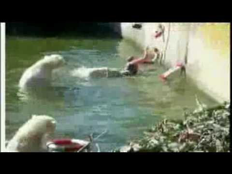 Chisà che attimi di terrore avrà trascorso questa donna che sporgendosi troppo verso il recinto degli orsi cade rischiando di essere sbranata da loro, fortunatamente sono riusciti a tenerli lontani da lei mentre cercavano di recuperarla, penso che alla fine siano riusciti a portarla in salvo, ma che paura...